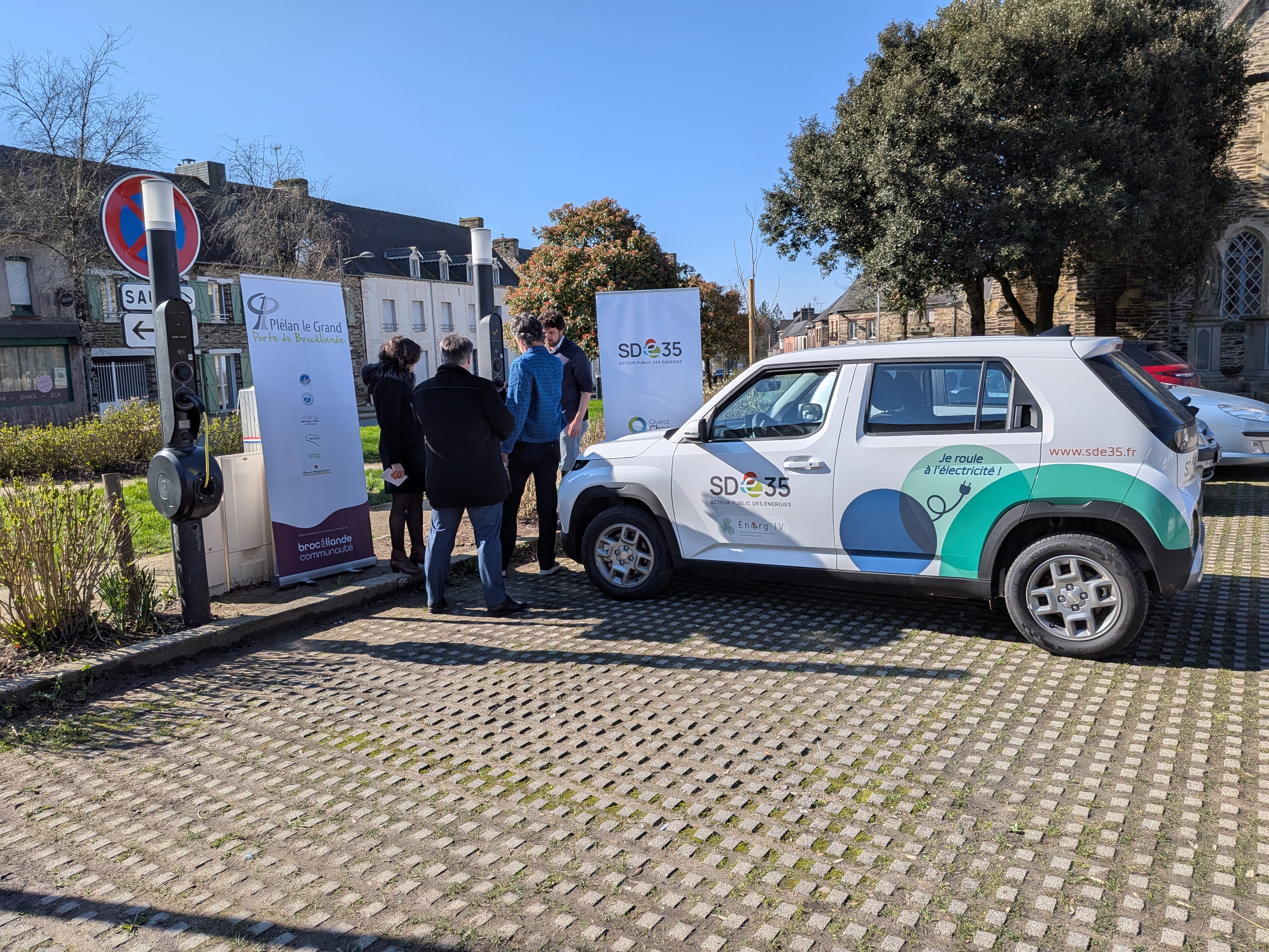 Ce matin, place de l'église, était inaugurée, en présence de l'opérateur de mobilité Qwello France et du SDE35, deux nouvelles bornes de recharge électrique venant compléter l'offre présente sur la commune. Désormais, les habitants de Plélan-le-Grand et leurs visiteurs, disposent de 4 bornes de recharge.