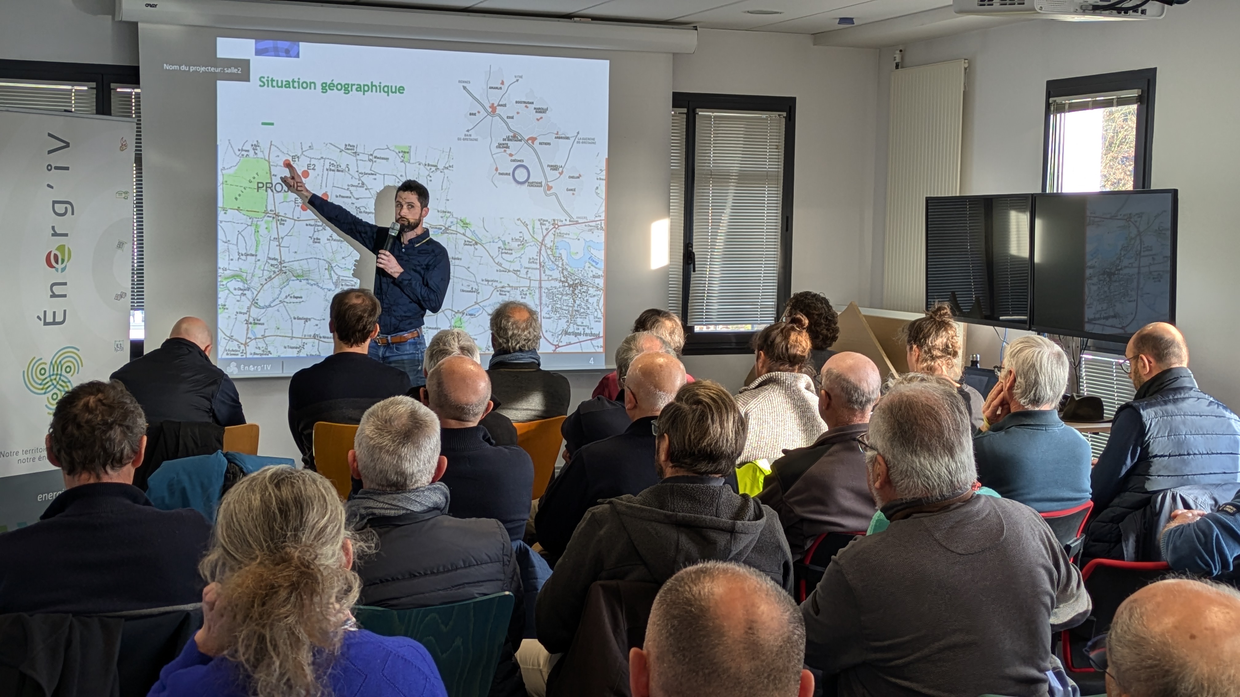 La matinée a été consacrée aux partenaires du projet : citoyens et structures actionnaires, élus locaux des communes environnantes, entreprises. Une présentation en salle a permis de revenir sur l'historique du projet, les dernières évolutions, le planning des travaux et les grands éléments clés (puissance, production...) La matinée s'est prolongée sur le terrain avec une visite commentée du parc éolien, le tout sous un beau soleil !
