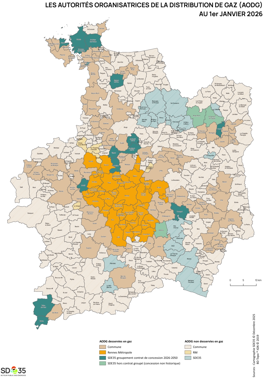 Au 1er janvier 2026, 38 communes brétiliennes ont transféré leur compétence au SDE35.